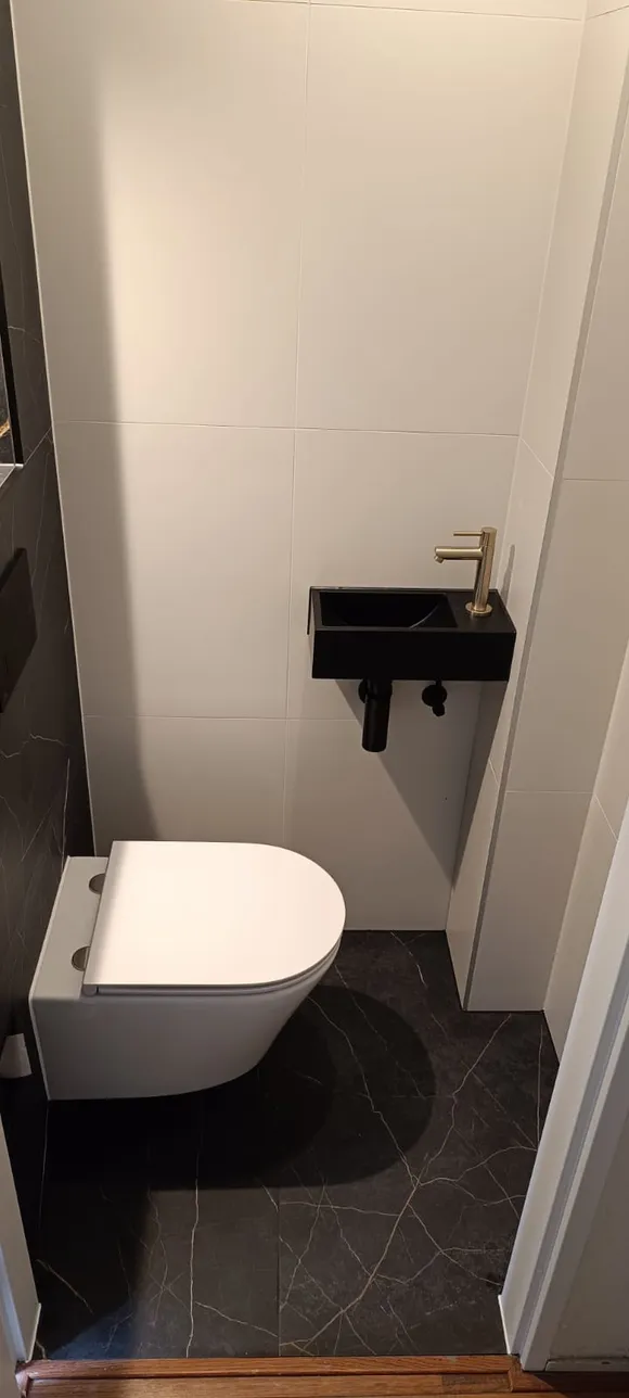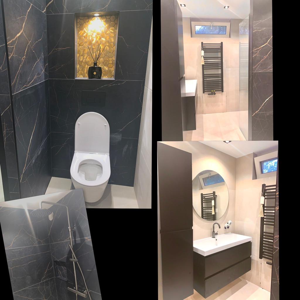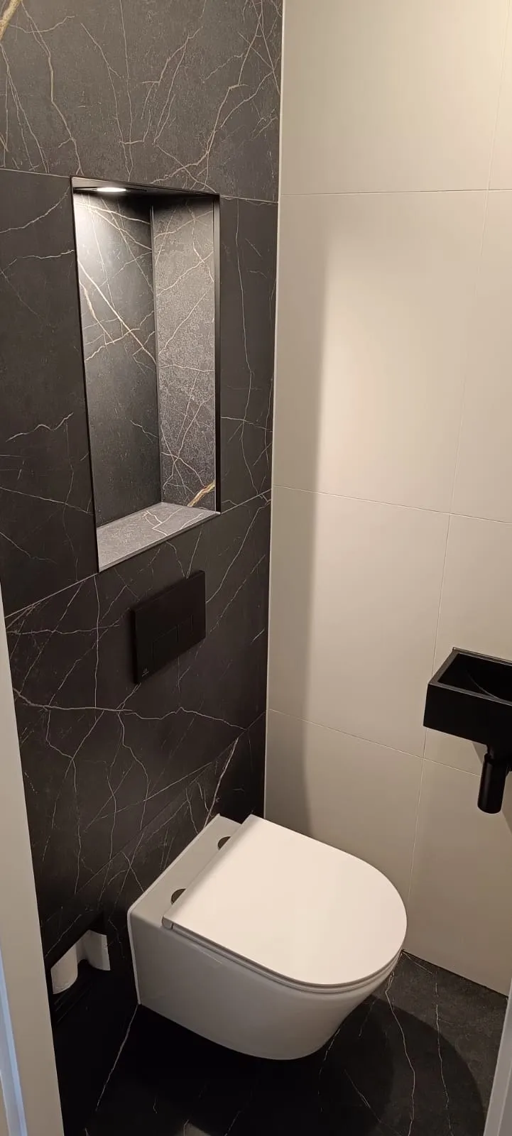 In Almelo hebben wij een luxe en elegante uitstraling gegeven aan de gerenoveerde badkamer en toilet met een marmerlook tegels.