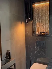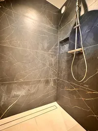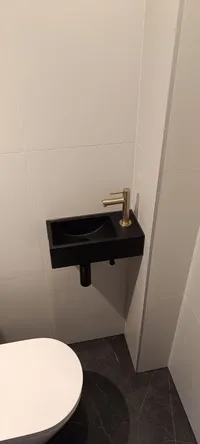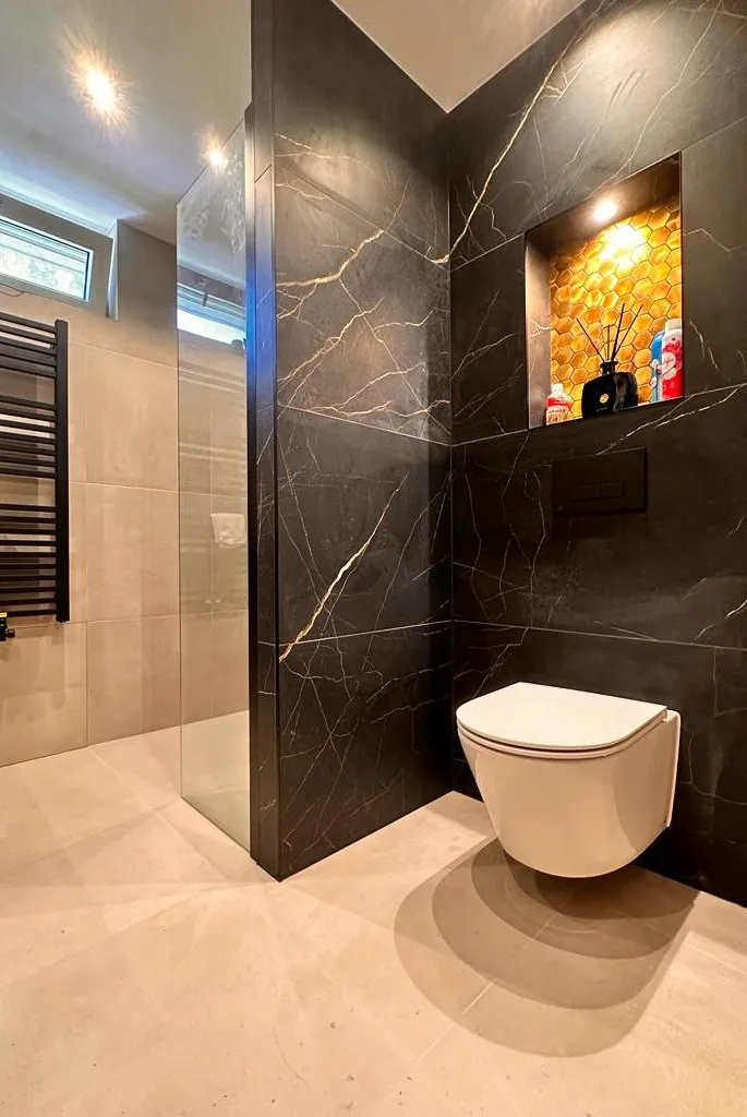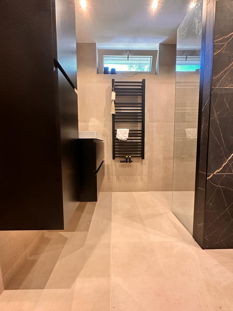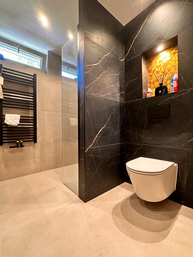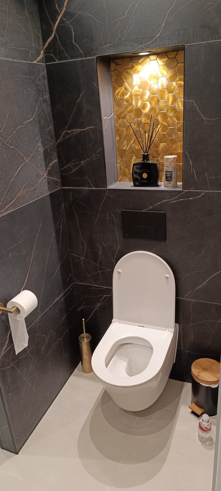 In Almelo hebben wij een luxe en elegante uitstraling gegeven aan de gerenoveerde badkamer en toilet met een marmerlook tegels.