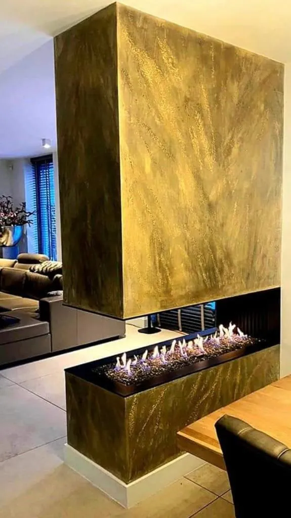 In deze prachtige woning in Almelo hebben wij met speciaal stucwerk gewerkt: oxidestuc met een licht glanseffect. Dit hebben wij zowel in de keuken aangebracht als in de woonkamer boven de openhaard.