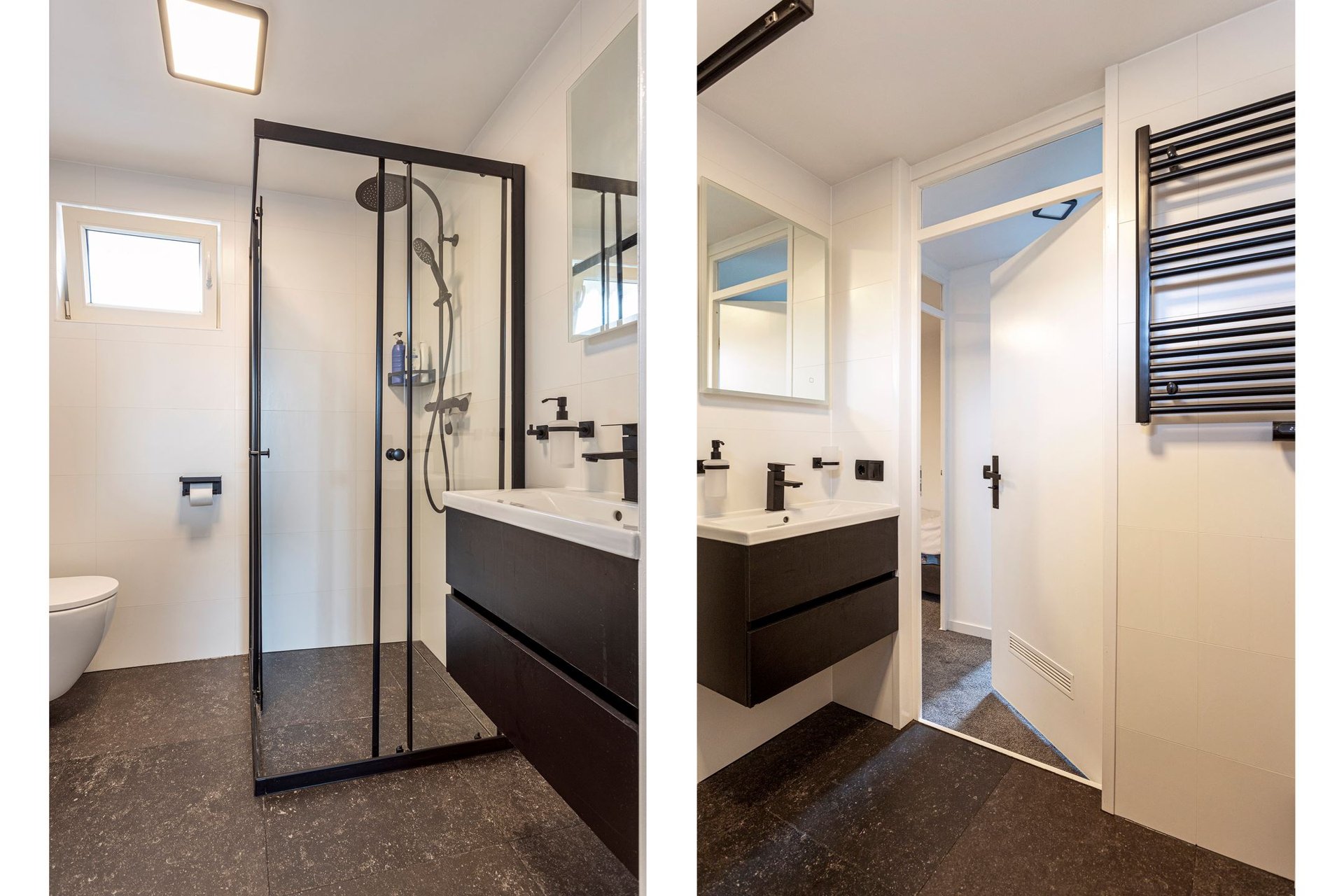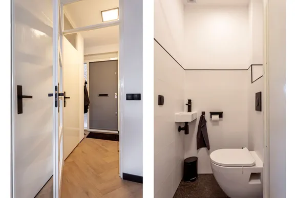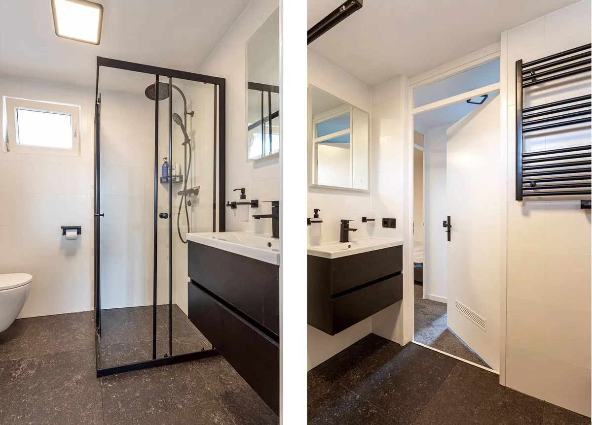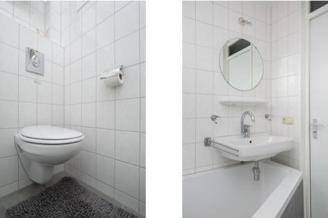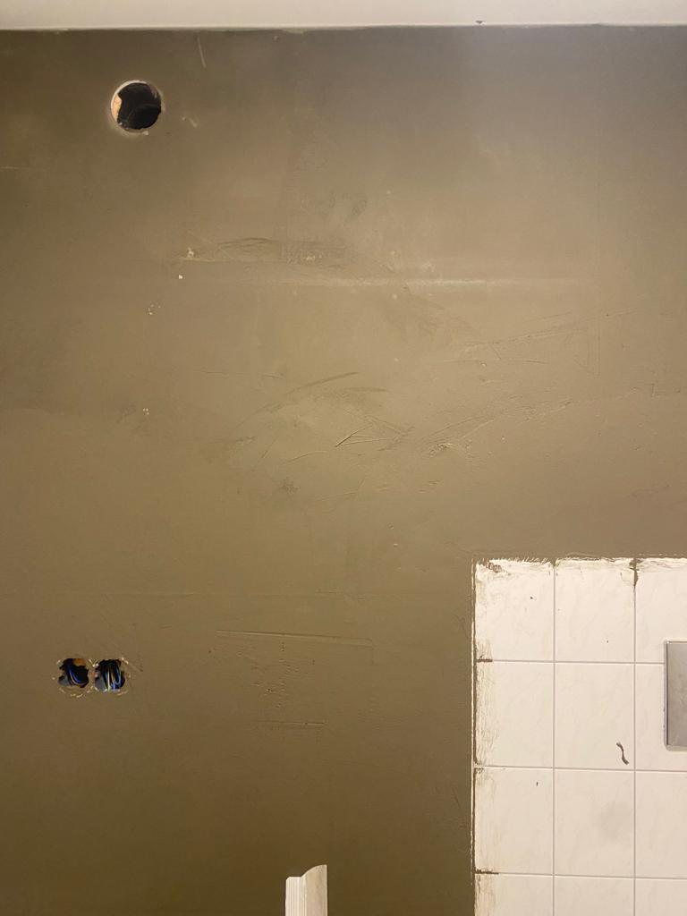 Een complete renovatie van een bestaande woning in Enschede. Gerenoveerde badkamer waarbij de bestaande raampost verplaatst is. De hele woning is bekleed met glad stucwerk.