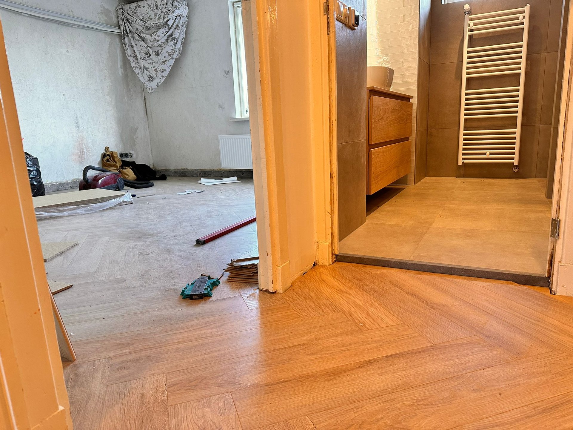 Verder is op de eerste etage een prachtige pvc visgraatvloer gelegd. De visgraatvloer vormt de perfecte luxe en speelse uitstraling. Deze vloer is zowel duurzaam als onderhoudsvriendelijk.