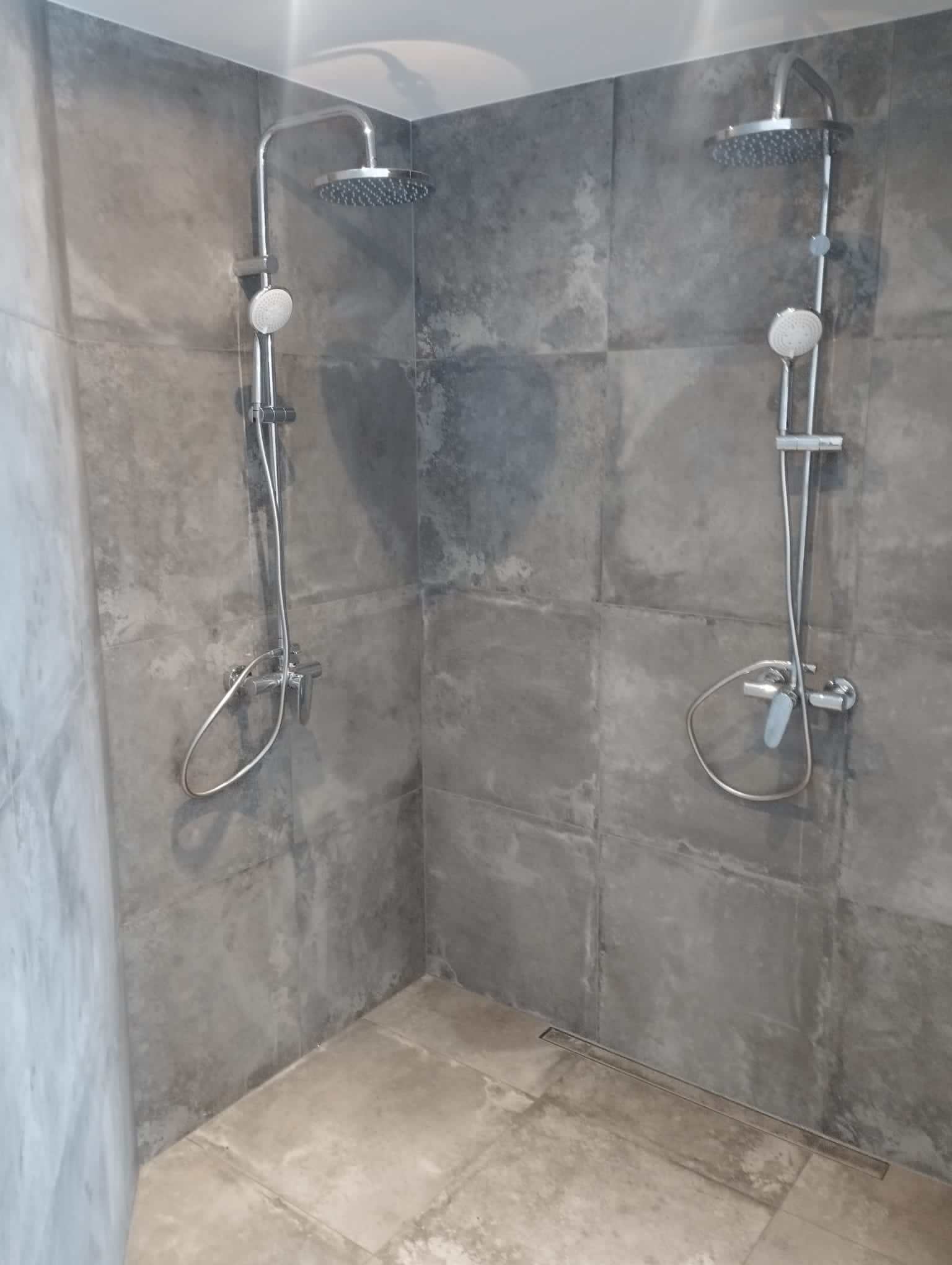 In de badkamer is het badmeubel verwijderd en dit creërde meteen ruimte in de badkamer. Hierdoor konden wij aan de wens van de klant voor twee douches voldoen.