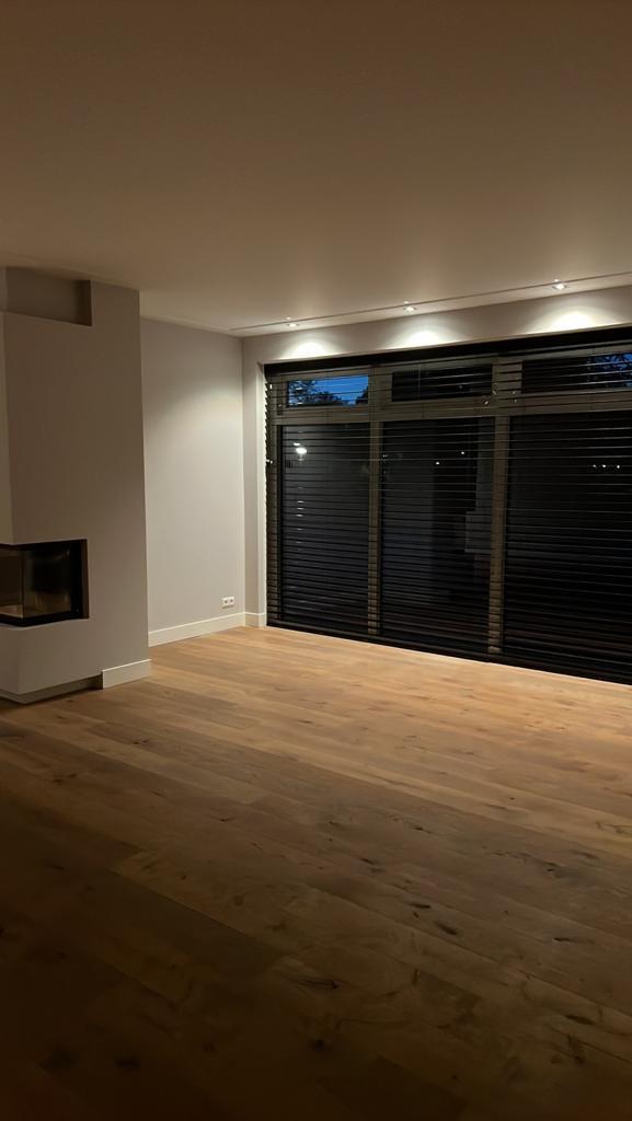 Zowel beneden als boven is de villa gemoderniseerd, met glad stucwerk op zowel de muren als de plafonds. Alle plafonds en muren zijn bovendien gesaust en de kozijnen en deuren zijn opnieuw gelakt.