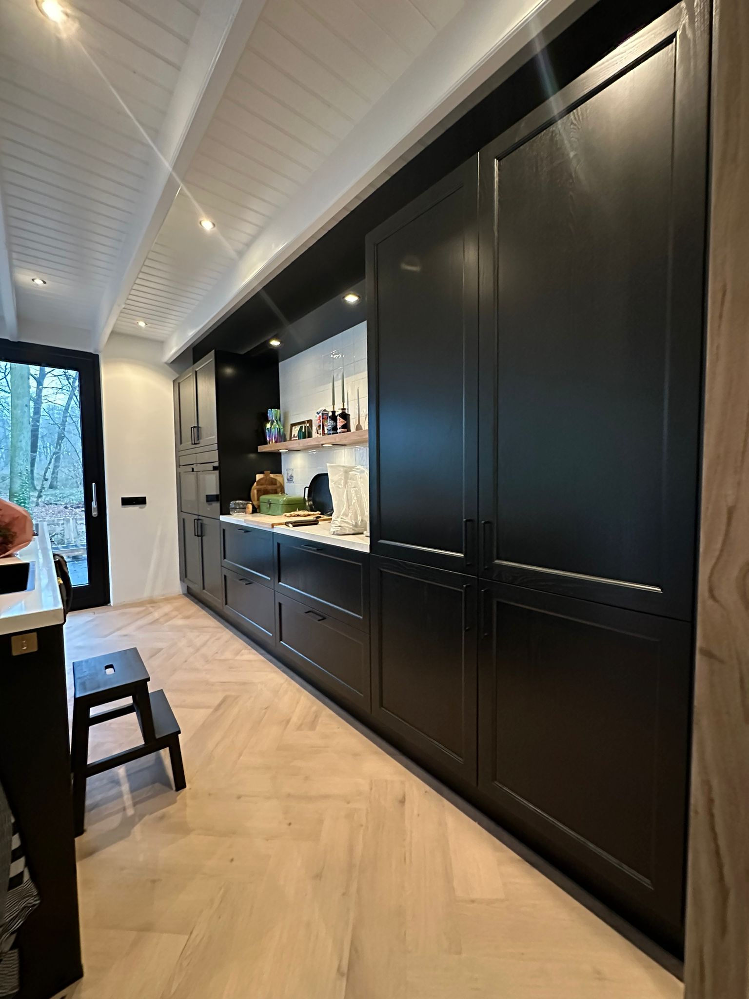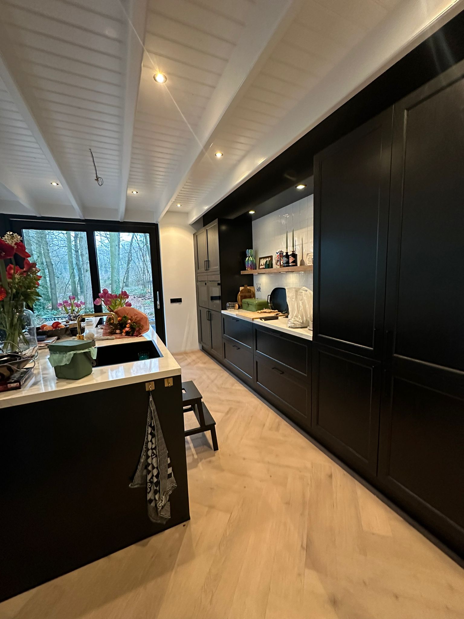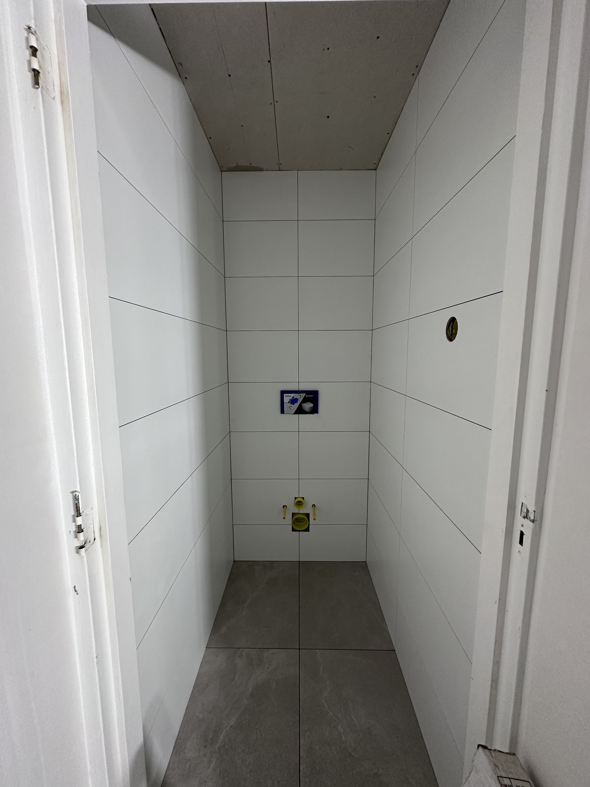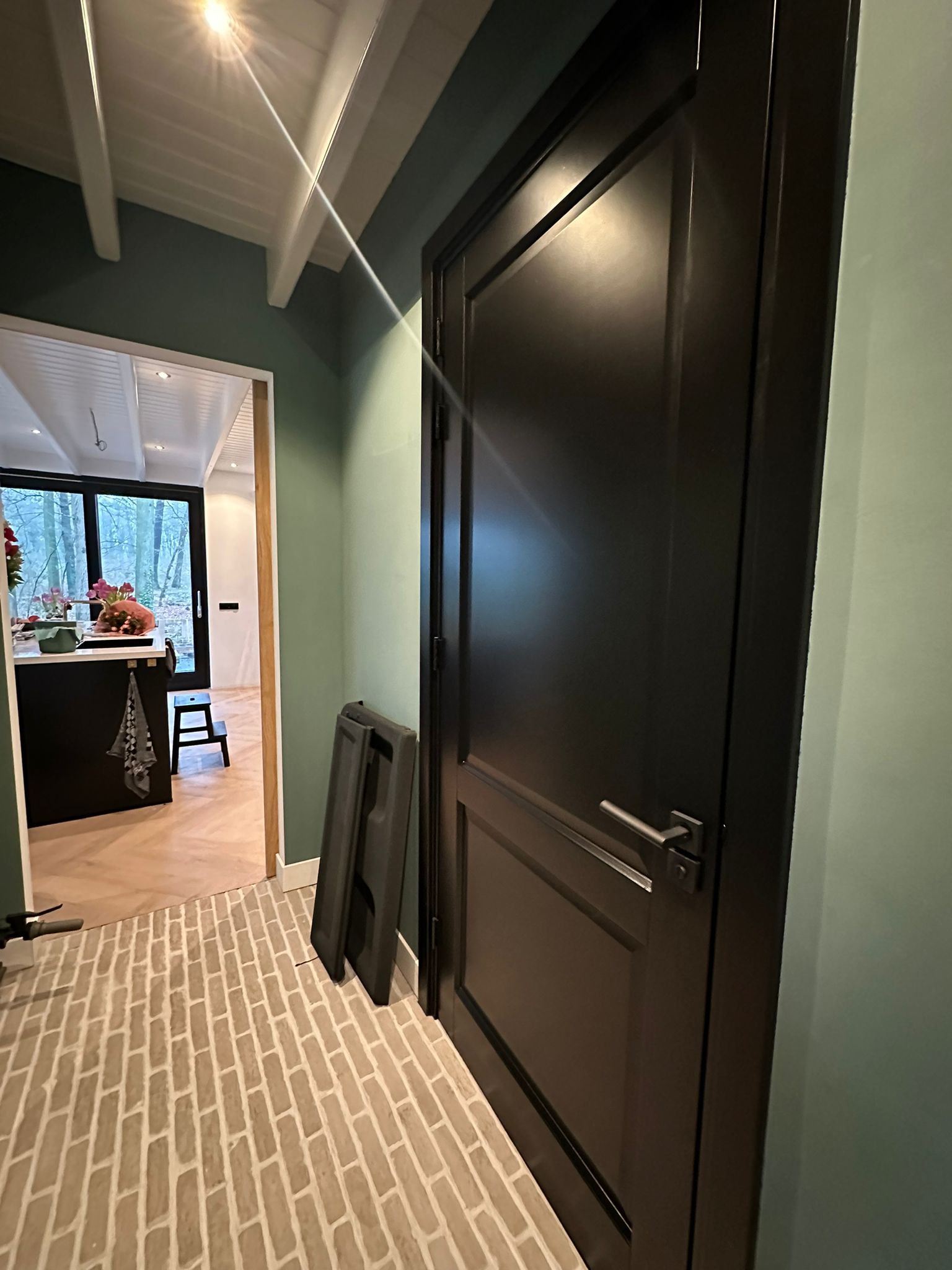 Naast bovengenoemde werkzaamheden, hebben we ook de toiletten geïnstalleerd en betegeld. Ook zijn de deuren en kozijnen zwart geschilderd om het huis een moderne look te geven.