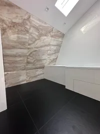 We zijn verheugd om u een kijkje te geven in een van onze recent opgeleverde badkamers. Bij ons staat het creëren van prachtige en functionele badkamers centraal, waarbij we streven naar het vervullen van al uw wensen en behoeften. Deze badkamer is een perfect voorbeeld van ons vakmanschap en oog voor detail. Met een combinatie van hoogwaardige materialen, stijlvolle afwerkingen en slimme indelingen hebben we een ruimte gecreëerd die zowel esthetisch als praktisch is.
